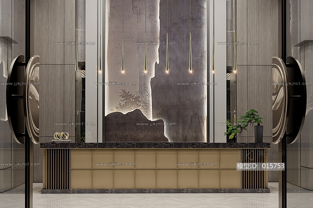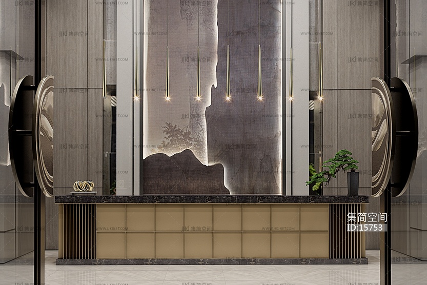 Z08-0107新中式售楼处前台接待盆景中式门拉手 3d模型下载 [模型ID:15753]