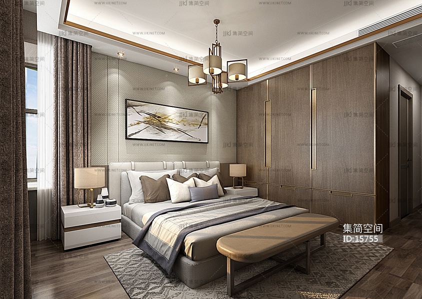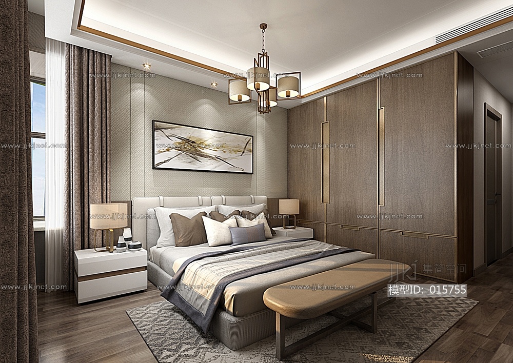 Z10-0107新中式卧室 3d模型下载 [模型ID:15755]