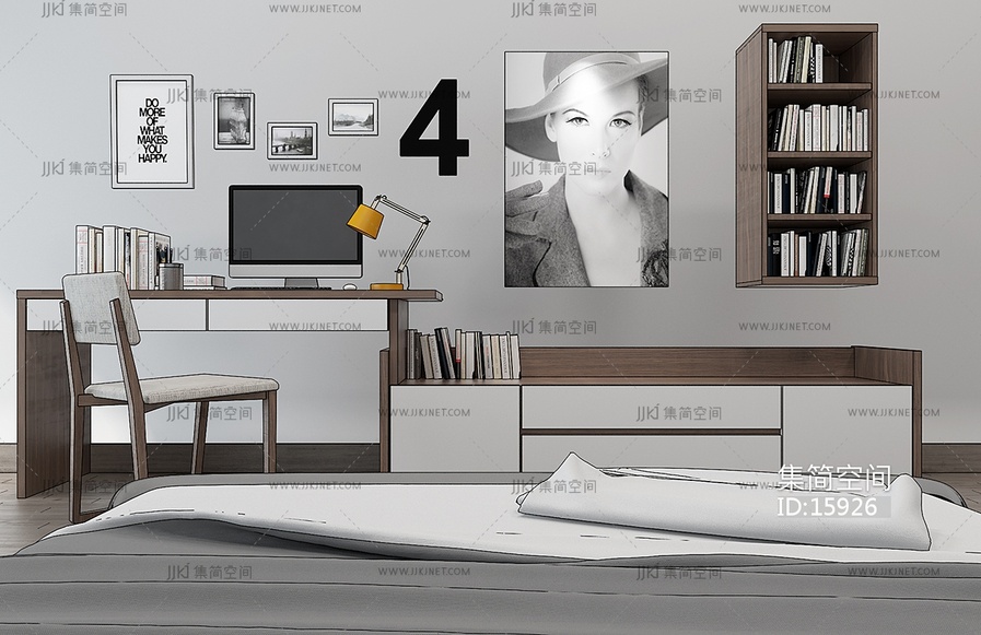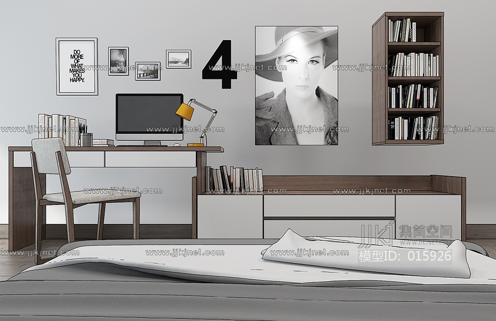 H04-0101现代书桌椅写字台 3d模型下载 [模型ID:15926]