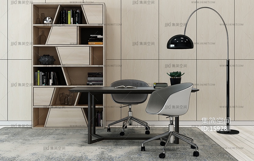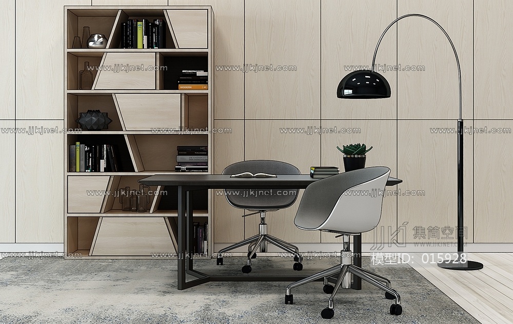 H05-0101现代书桌书柜落地灯办公椅 3d模型下载 [模型ID:15928]