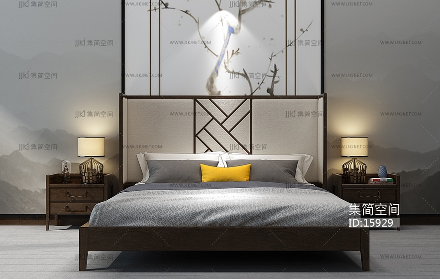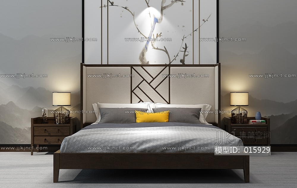 H05-0101新中式床床头柜台灯 3d模型下载 [模型ID:15929]