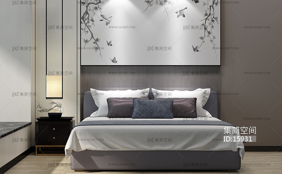 H06-0101新中式床床头柜吊灯 3d模型下载 [模型ID:15931]