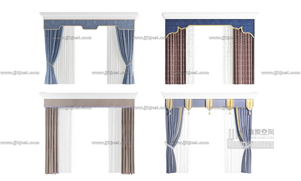 欧式古典欧式美式窗帘组合模型3D模型3d模型下载
