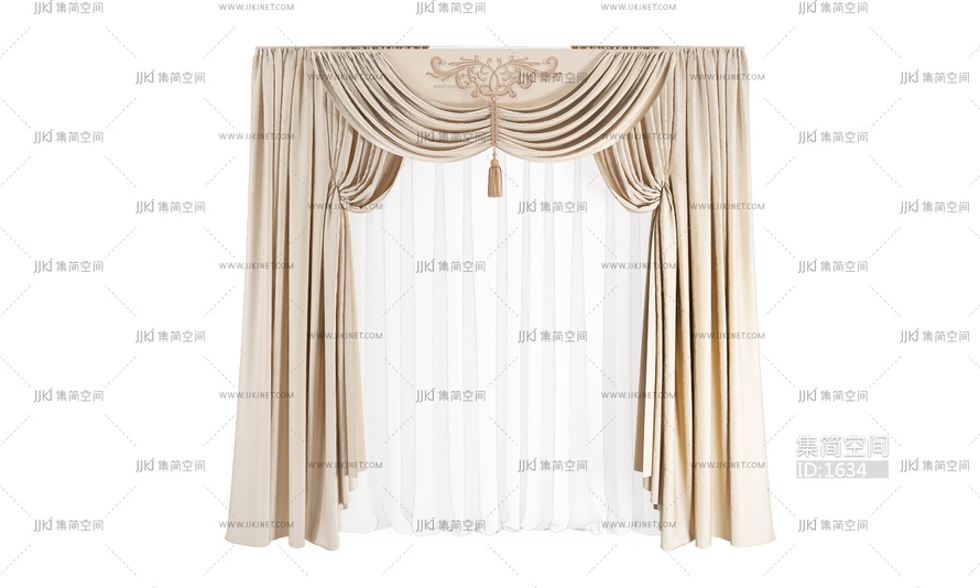 美式欧式通用窗帘3D模型3d模型下载