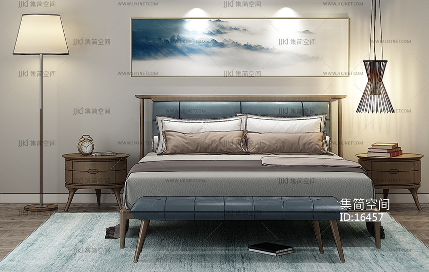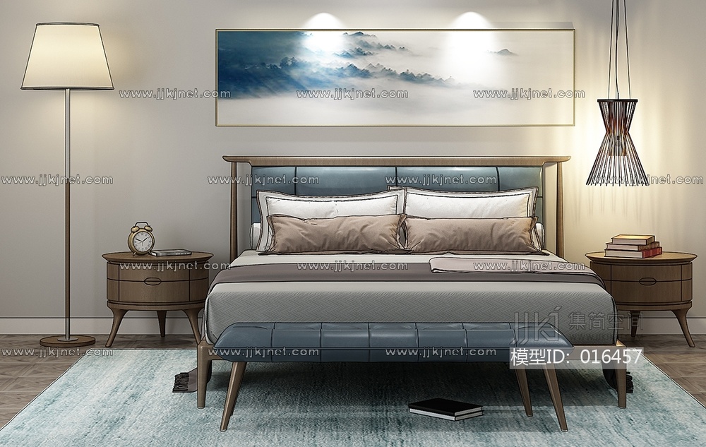 现代布艺双人床3d模型下载