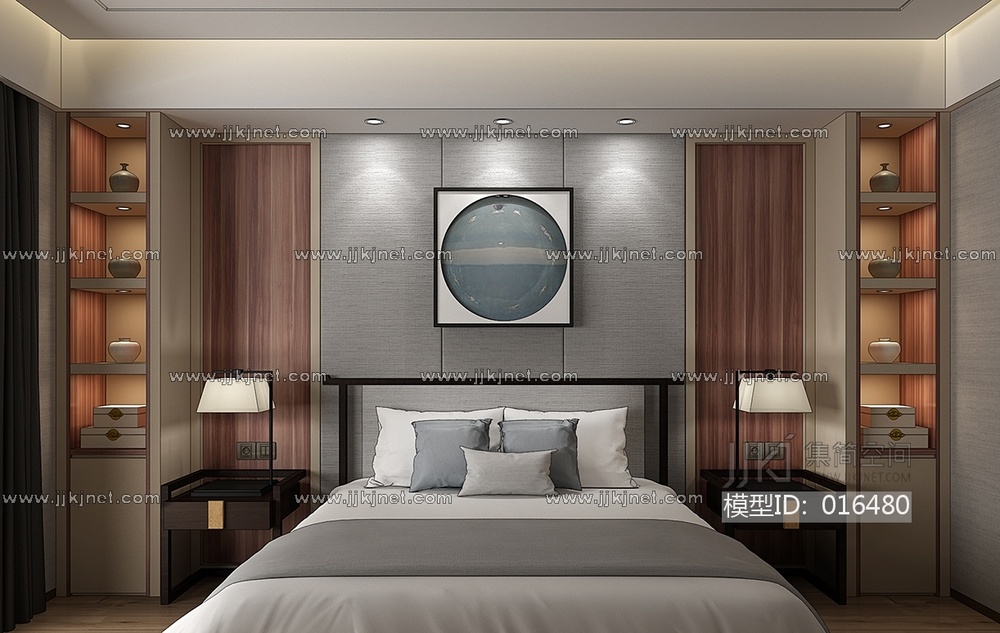 H18-0101中式床床头柜卧室 3d模型下载 [模型ID:16480]