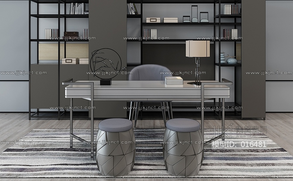 H19-0101北欧现代书房桌椅 3d模型下载 [模型ID:16481]