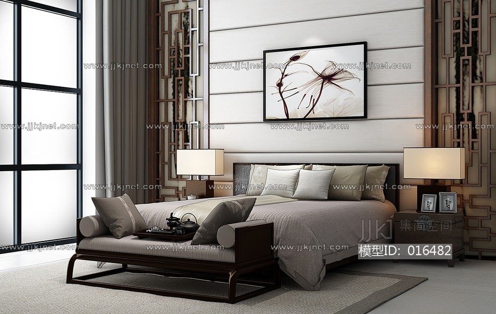 H19-0101新中式床床头柜卧室组合 3d模型下载 [模型ID:16482]