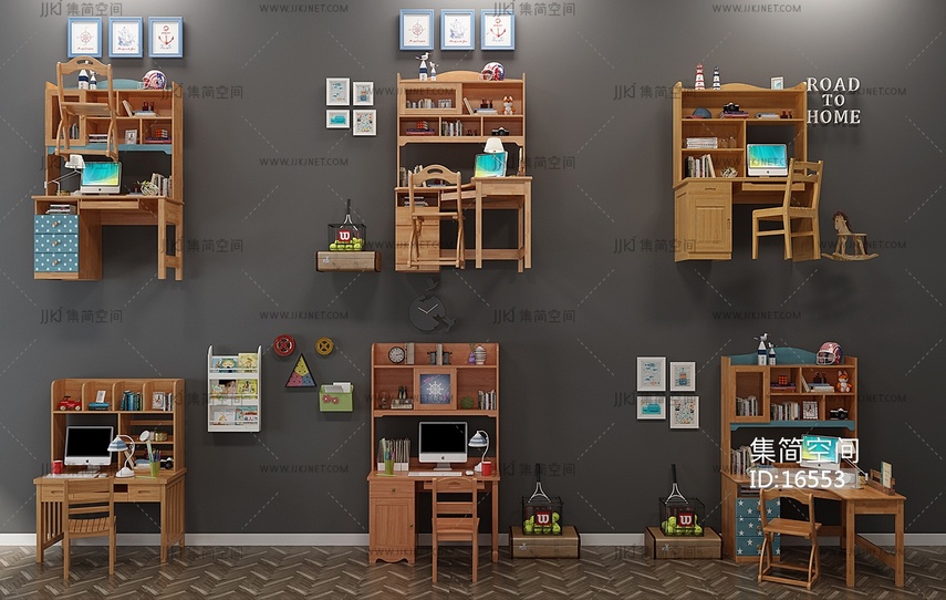 H21-0101现代儿童书桌椅写字台 3d模型下载 [模型ID:16553]