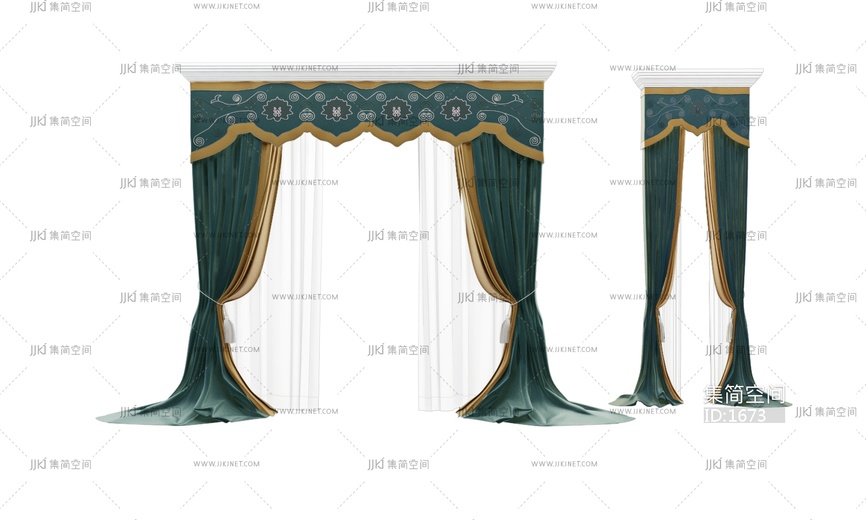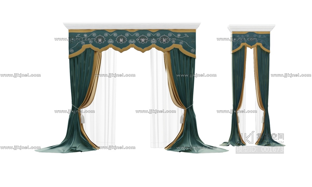 欧式古典窗帘_拉帘组合3D模型3d模型下载