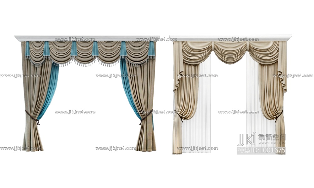 欧式古典窗帘_拉帘组合3D模型3d模型下载