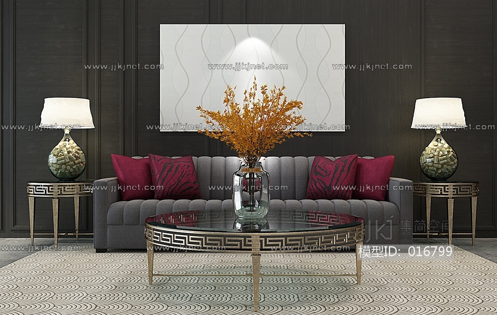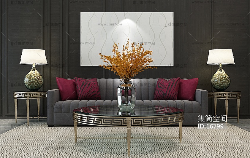 H01-0103新中式欧式沙发茶几台灯 3d模型下载 [模型ID:16799]