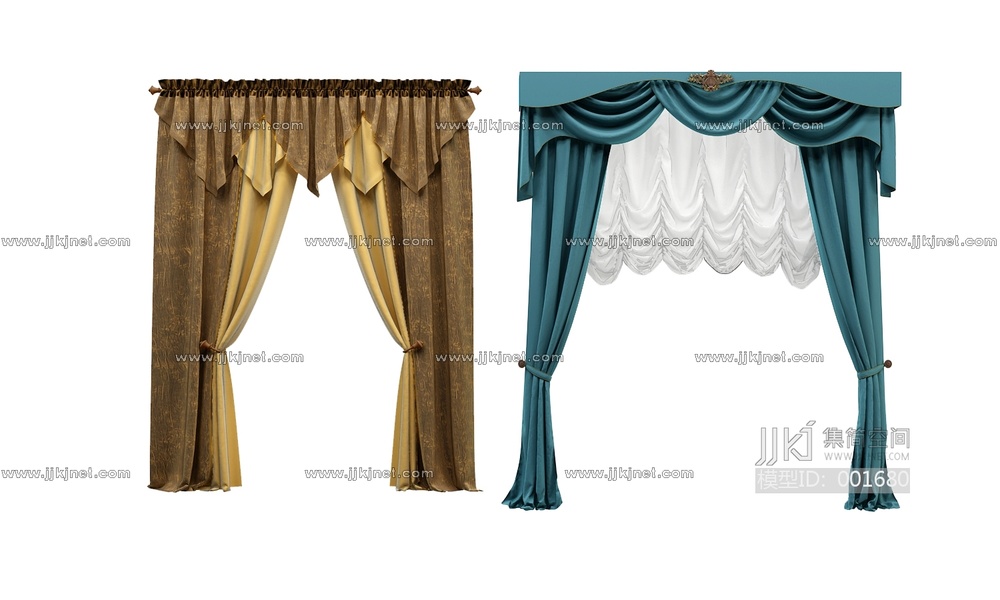 欧式古典窗帘_拉帘组合3D模型3d模型下载