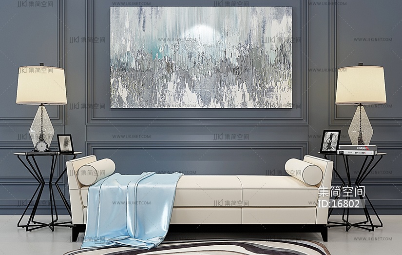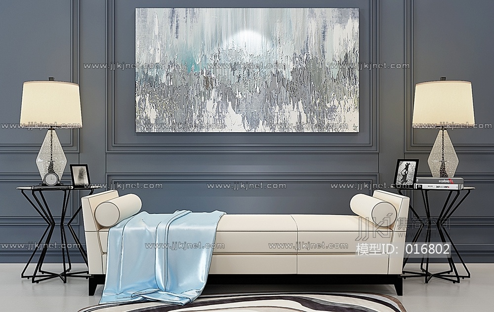 H05-0103现代床尾凳脚凳边几台灯 3d模型下载 [模型ID:16802]