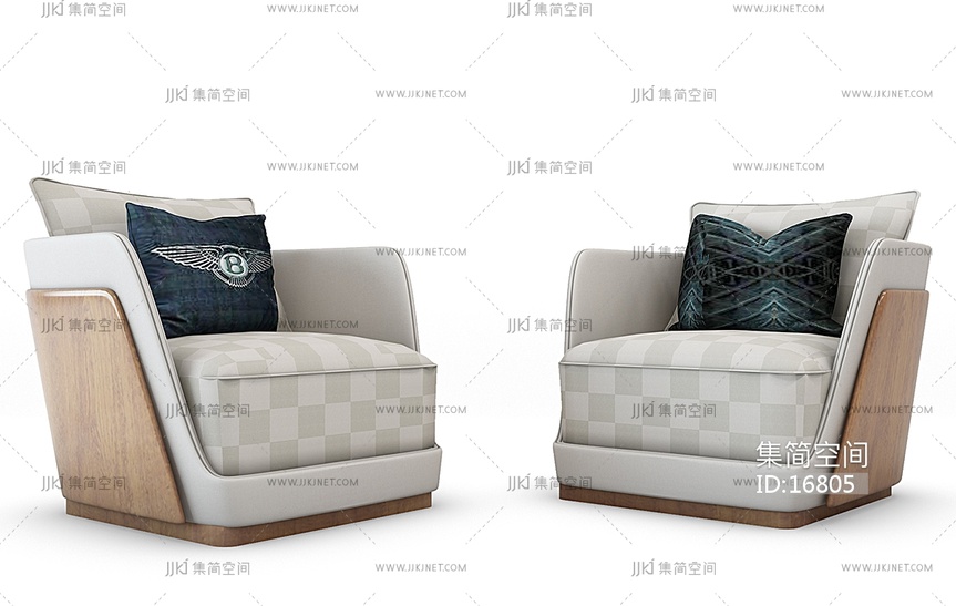 H08-0103宾利现代布艺单人沙发 3d模型下载 [模型ID:16805]