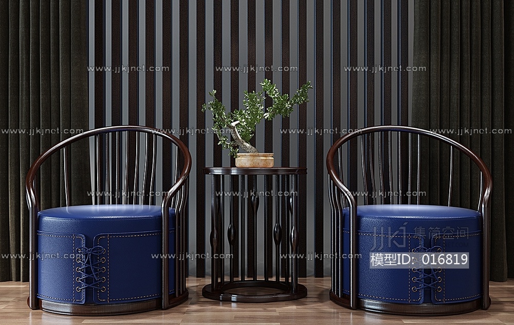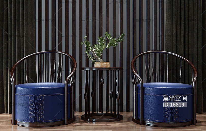 H21-0103新中式实木休闲椅圆几边几组合 3d模型下载 [模型ID:16819]