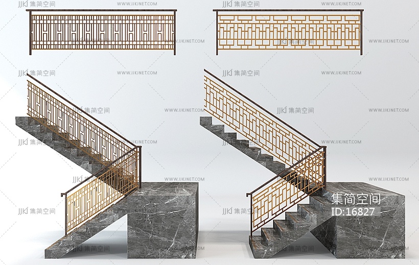 H29-0103中式楼梯栏杆护栏 3d模型下载 [模型ID:16827]