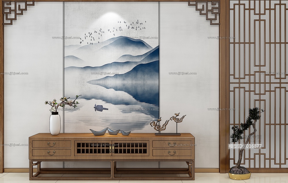 H22-0102新中式电视柜花格 3d模型下载 [模型ID:16877]