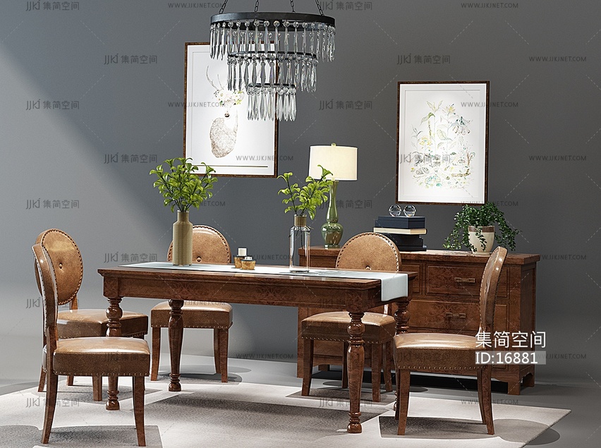 H01-0104美式餐桌椅餐边柜吊灯 3d模型下载 [模型ID:16881]