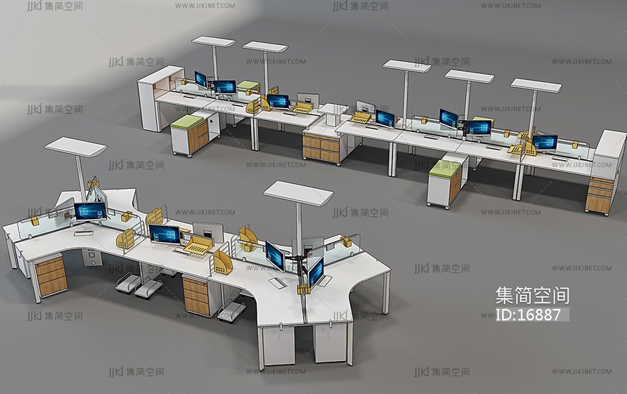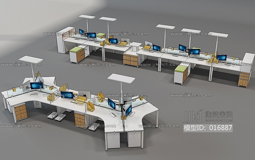 H07-0104现代职员办公桌卡位文件柜组合 3d模型下载 [模型ID:16887]