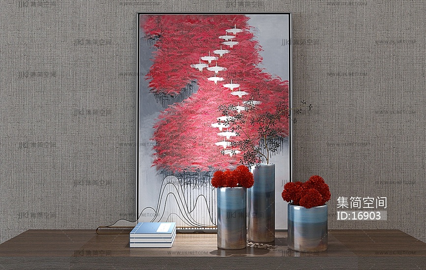 H23-0104新中式花瓶花卉挂画书籍摆件组合 3d模型下载 [模型ID:16903]