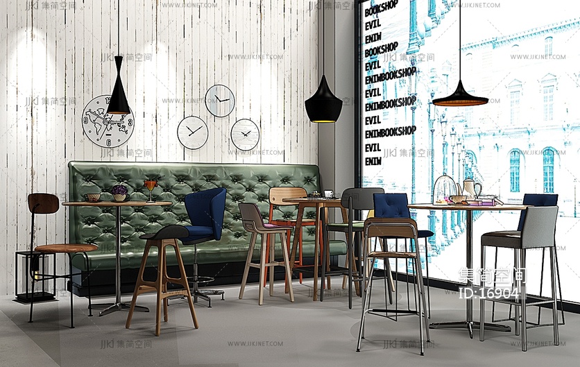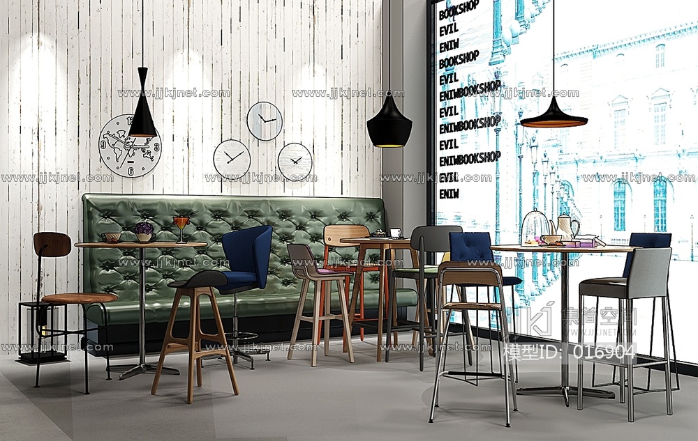 H25-0104工业风圆桌吧椅吊灯组合欧式卡座 3d模型下载 [模型ID:16904]
