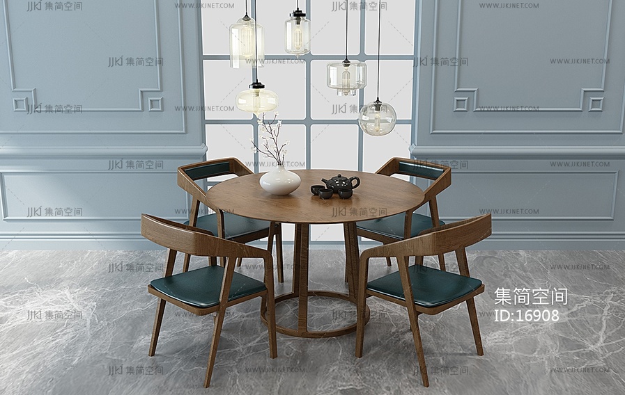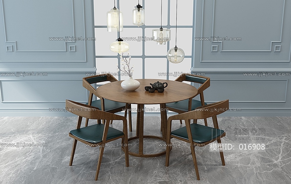H29-0104北欧圆形餐桌椅吊灯组合 3d模型下载 [模型ID:16908]