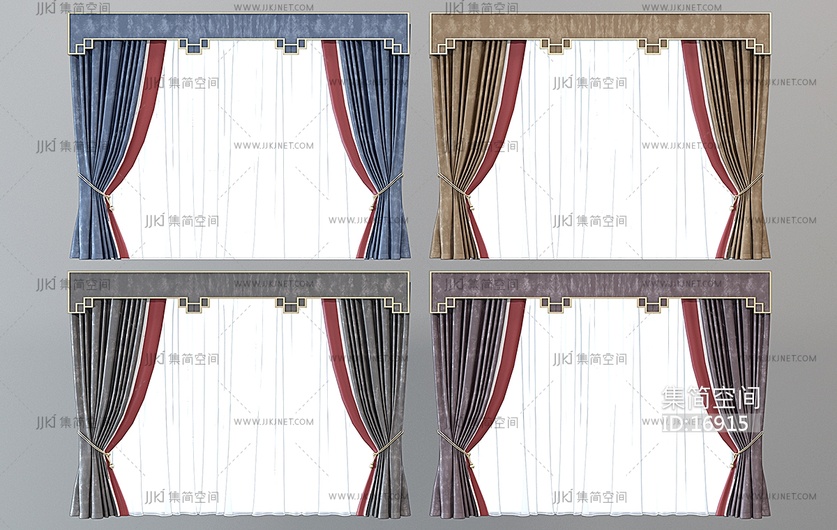 新中式窗帘现代窗帘3d模型3d模型下载