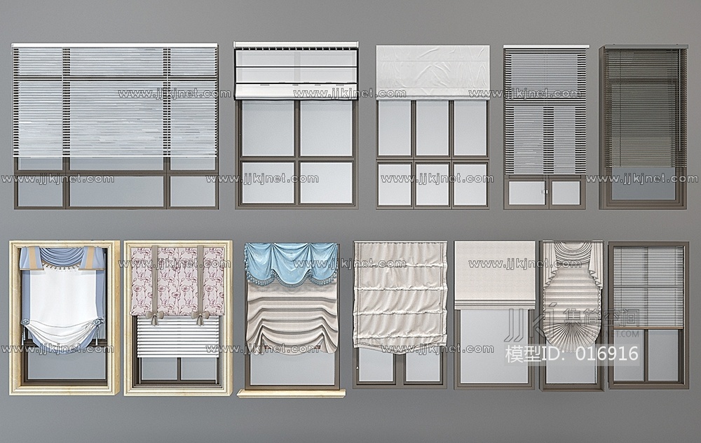 H37-0104现代窗户窗框百叶帘罗马帘 3d模型下载 [模型ID:16916]