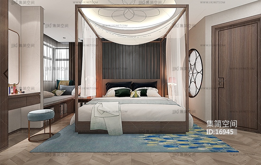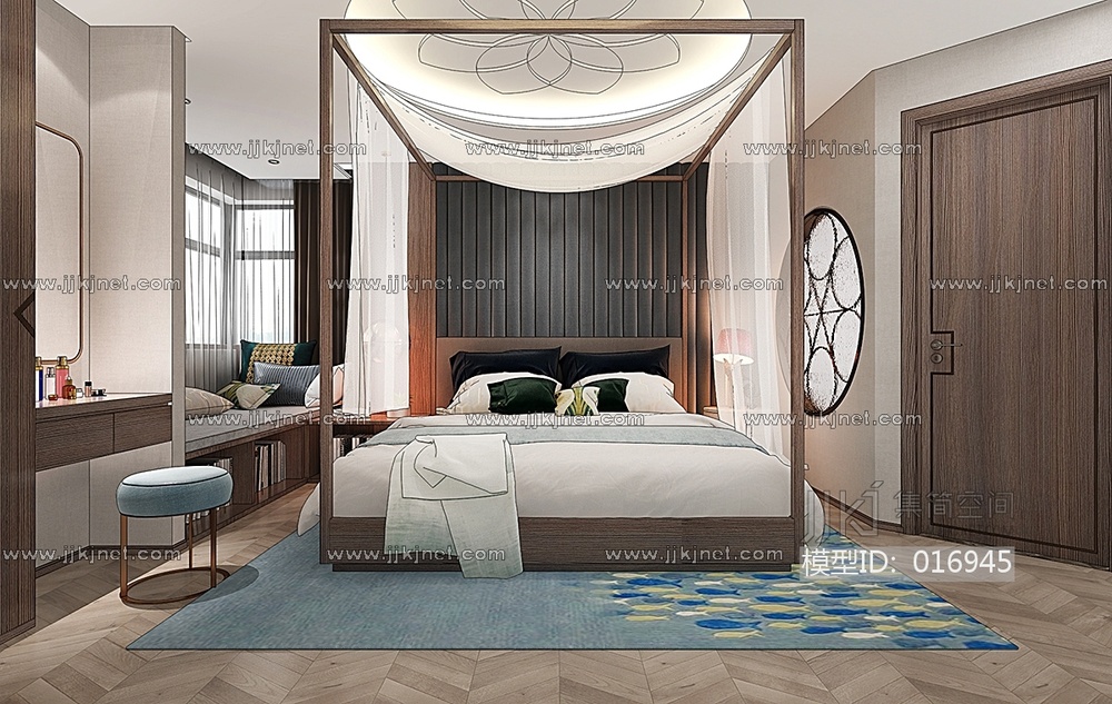 H26-0105新中式卧室架子床 3d模型下载 [模型ID:16945]
