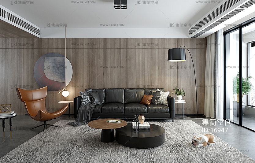 H28-0105现代客厅沙发茶几组合宠物狗 3d模型下载 [模型ID:16947]