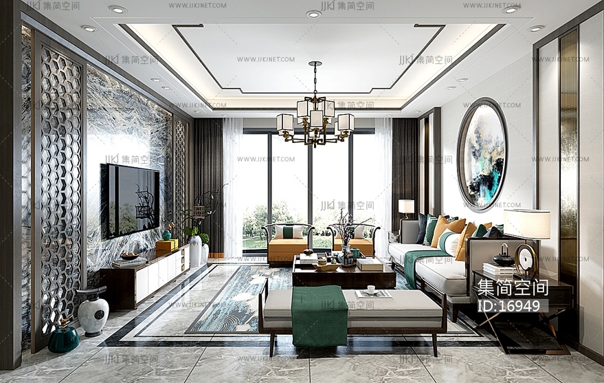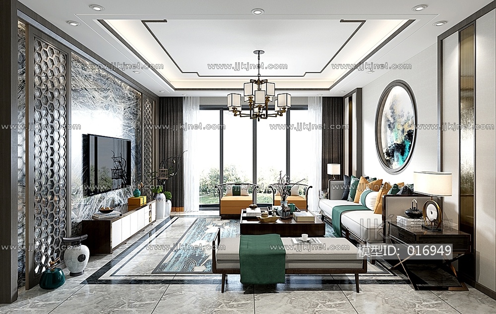 H30-0105新中式客厅沙发茶几电视柜饰品摆件 3d模型下载 [模型ID:16949]