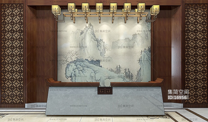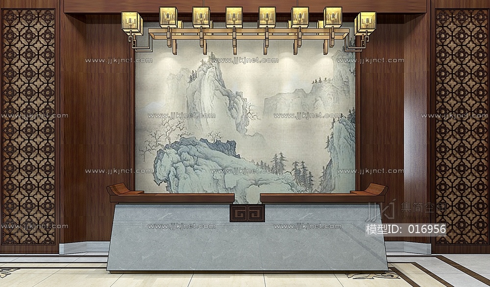 H07-0111新中式服务台吊灯花格 3d模型下载 [模型ID:16956]
