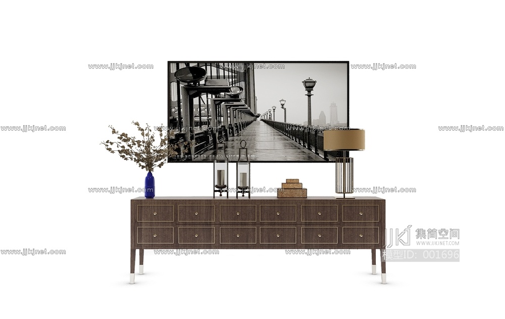 071-7-04现代电视柜及台灯、装饰品 3d模型下载 [模型ID:1696]