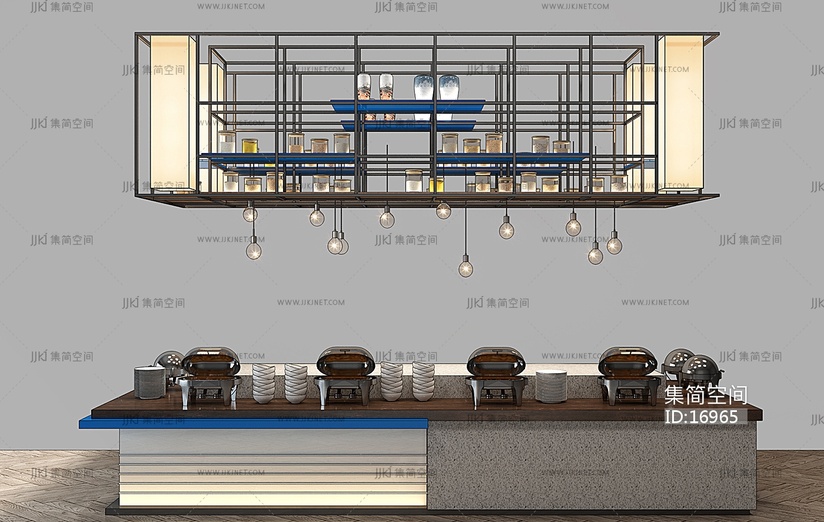 H16-0111新中式自助餐厅餐台吊灯自助餐具 3d模型下载 [模型ID:16965]