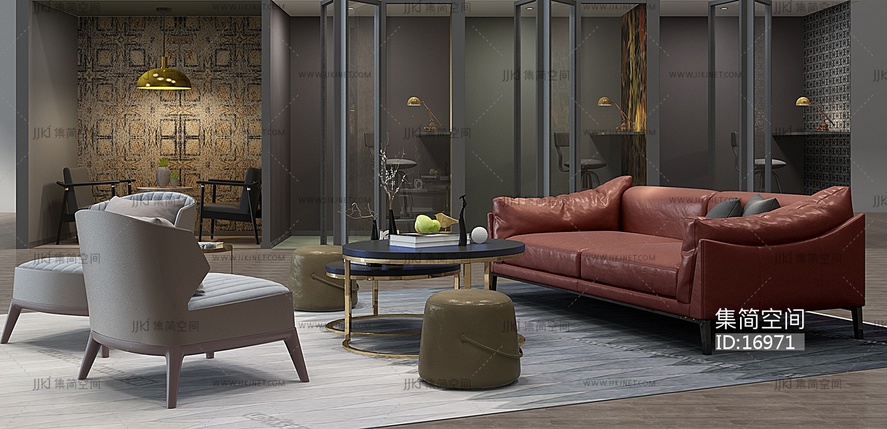 10-法式休闲区沙发卡座拼接沙发沙发区,沙发区,拼接沙发落地灯沙发凳3D模型vrrr3d模型下载