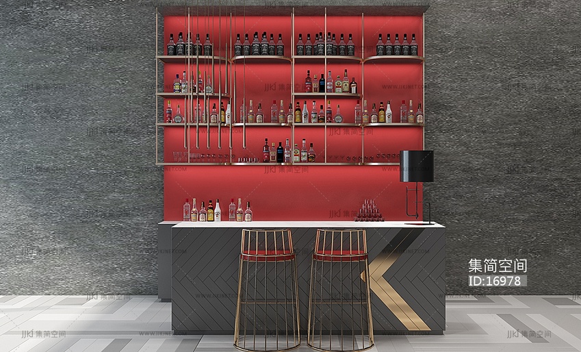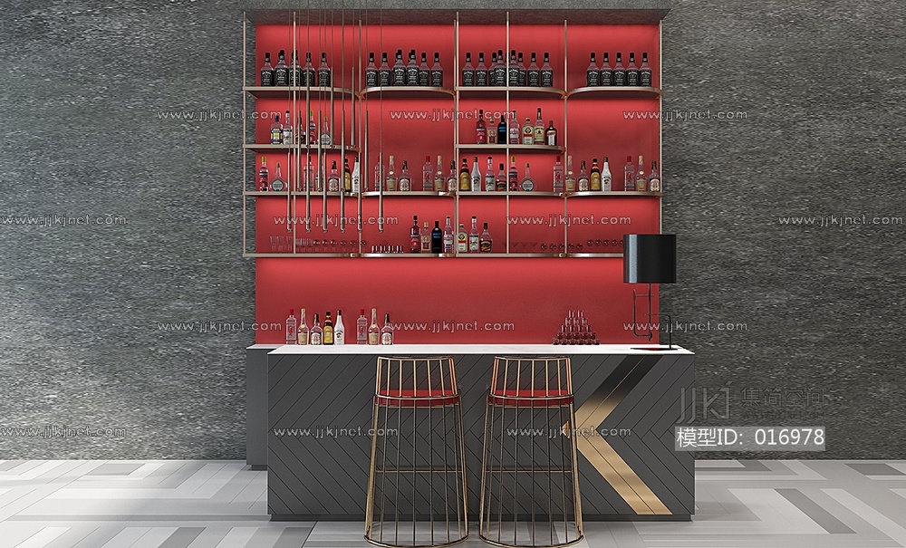 H10-0112现代水吧酒吧台酒柜酒瓶吧椅 3d模型下载 [模型ID:16978]