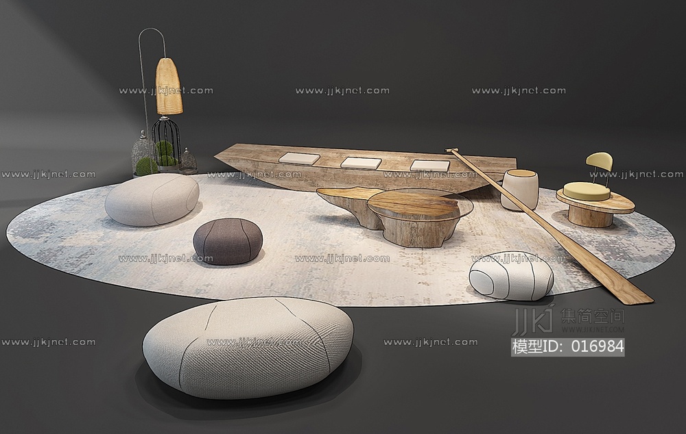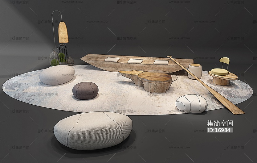 H16-0112新中式休闲公共座椅船座椅船桨懒人沙发 3d模型下载 [模型ID:16984]