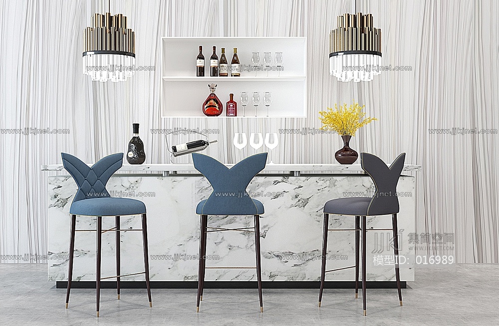 H01-0119欧式吧椅吊灯酒瓶 3d模型下载 [模型ID:16989]