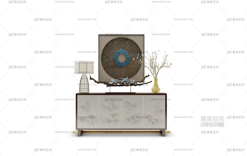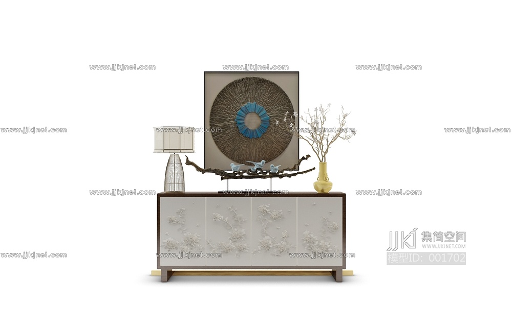 023边柜背景墙及饰品组合 3d模型下载 [模型ID:1702]