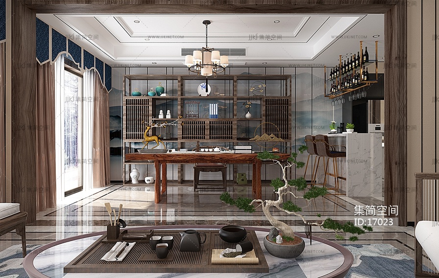 H09-0115新中式客厅 3d模型下载 [模型ID:17023]