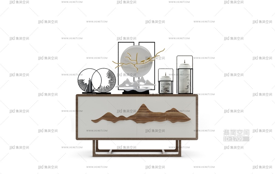 054中式边柜及饰品 3d模型下载 [模型ID:1709]