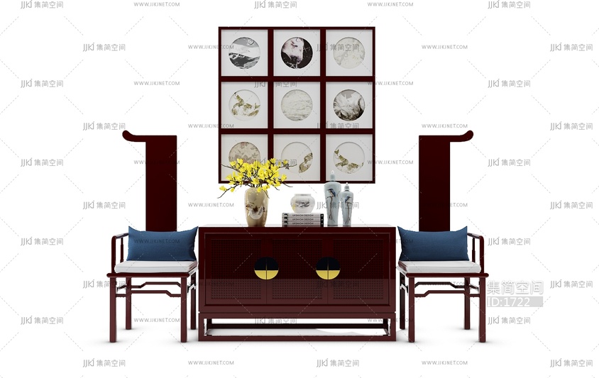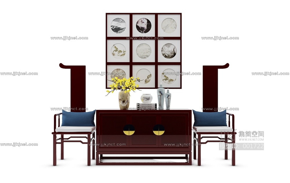 155-9-08-中式玄关柜及饰品椅子 3d模型下载 [模型ID:1722]