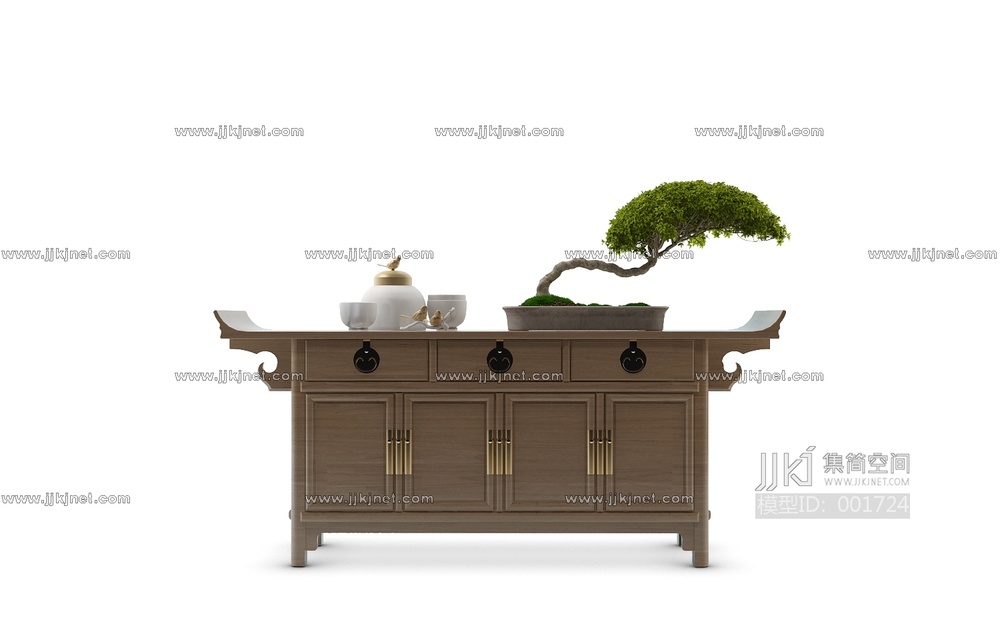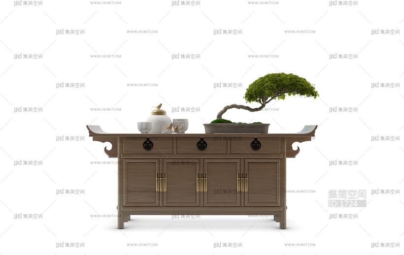 新中式条案 端景台,格栅3d模型 3d模型下载