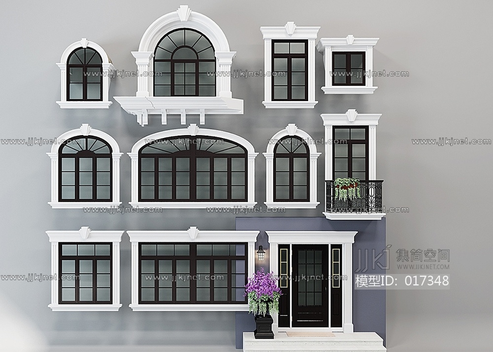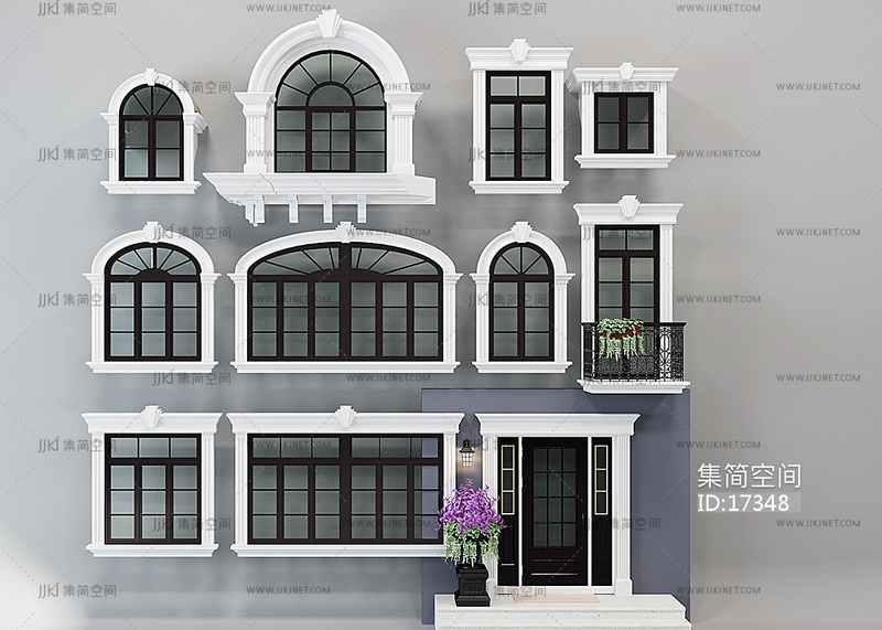 H17-0107欧式外立面门窗 3d模型下载 [模型ID:17348]