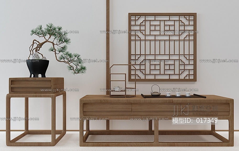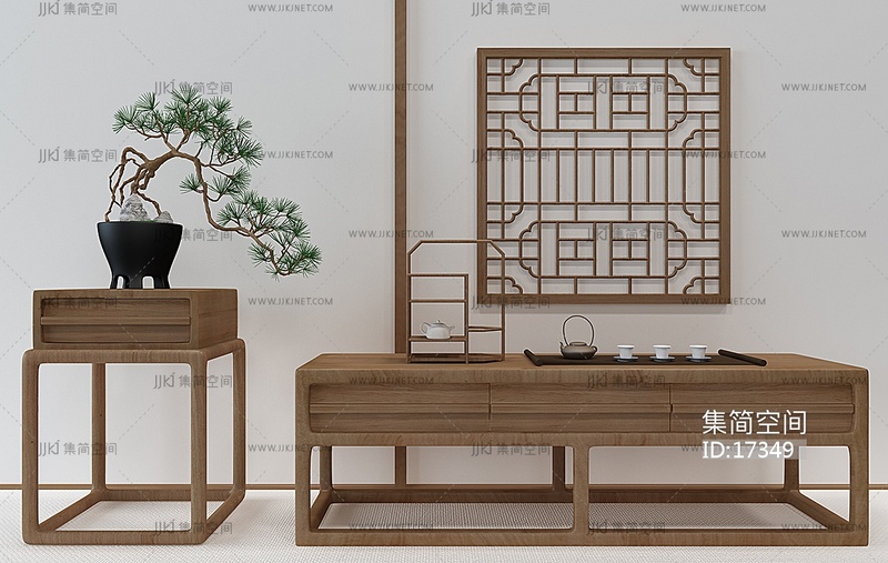 H18-0107新中式边柜_玄关柜端景台 3d模型下载 [模型ID:17349]