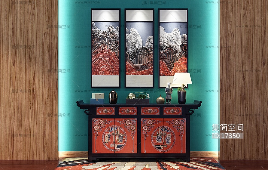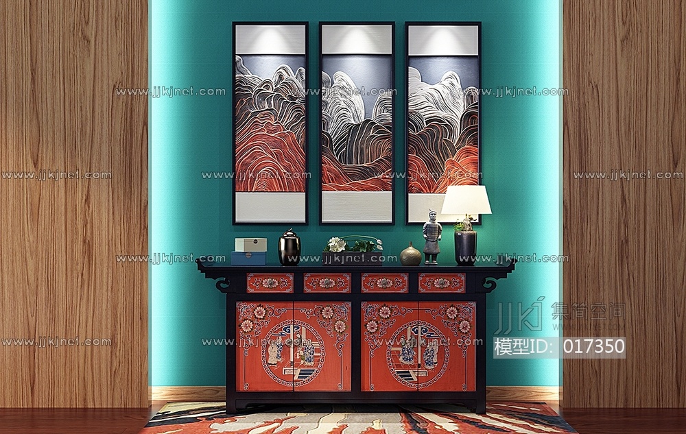 H19-0107新中式边柜_玄关柜挂画 3d模型下载 [模型ID:17350]