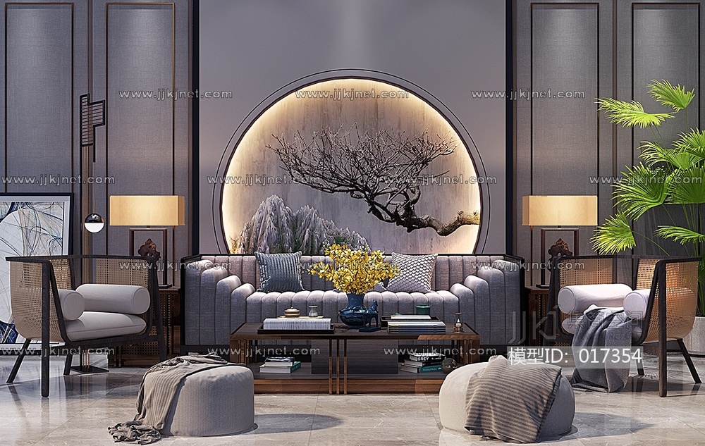 H23-0107新中式沙发东南亚休闲椅茶几沙发蹲 3d模型下载 [模型ID:17354]