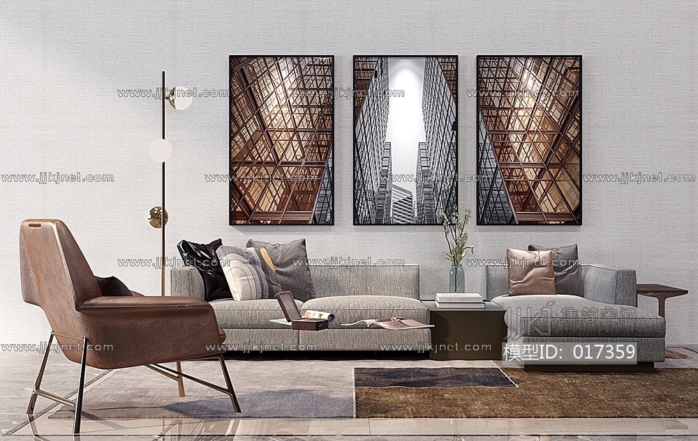 H28-0107现代沙发茶几落地灯挂画组合 3d模型下载 [模型ID:17359]