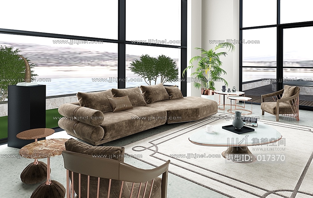 H06-0122意大利LONGHI品牌现代沙发茶几边几客厅组合 3d模型下载 [模型ID:17370]